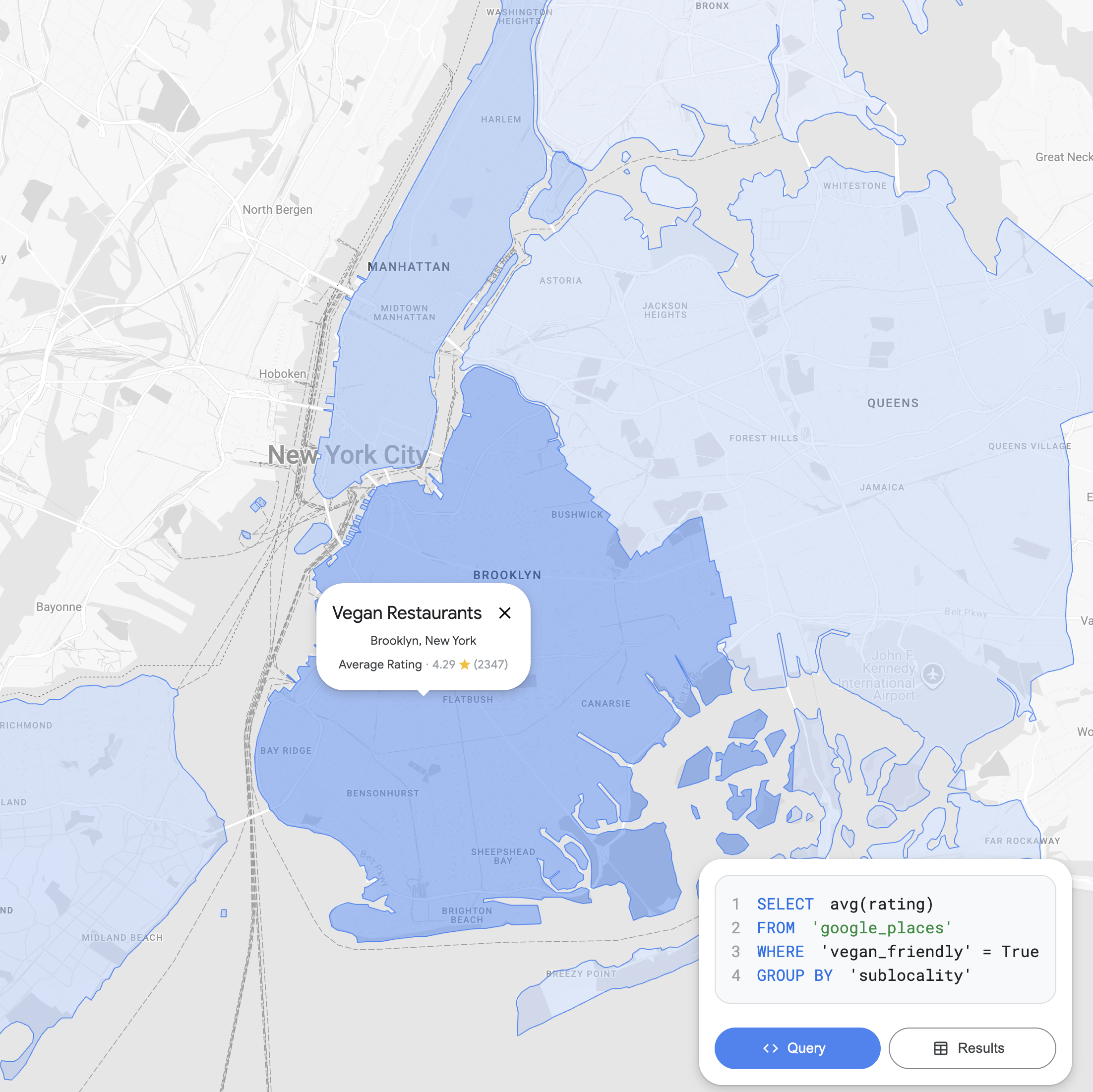 Maps Analytics gibt User:innen Zugriff auf Places-, Umwelt-, Straßen- und Street-View-Daten in BigQuery. Damit ist es nun leichter, geodaten-basierte Analysen datenschutzkonform durchzuführen.